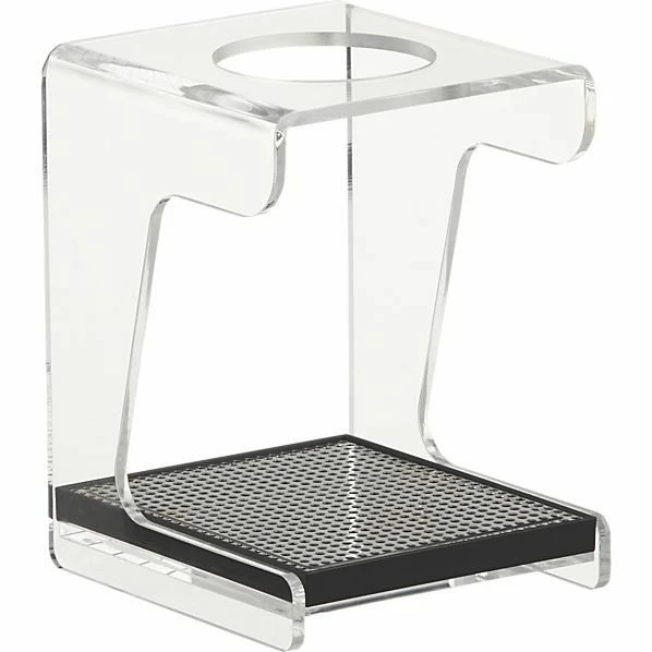 The stand is made of clear acrylic resin and the metal plate is stainless steel so it’s easy to keep clean.